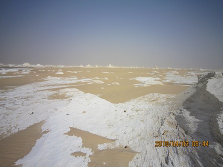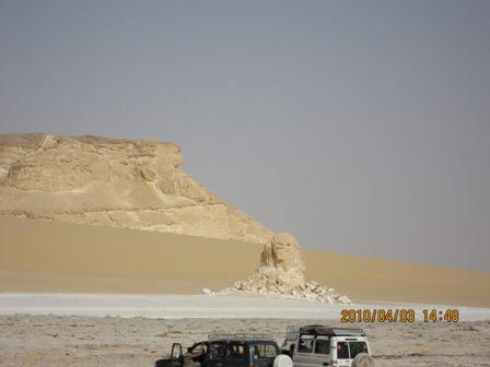 このあいだ、カイロ国際映画祭の”Cairo Time"とかいうカナダ・エジプト合作映画で、主人公のカナダ人女性が旅している光景が、とても宇宙的で強く印象に残っていたけれど、この白砂漠だったのですよ!40度超の炎天下なのに、流氷か氷河のただなかにいるような変な気分でした。石灰がふりつもって、風に削られて、こんな不思議な巨石群になってのだねー。