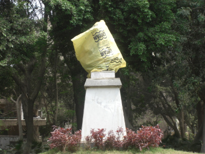 自宅すぐそばに僕らが銅像公園と呼んでいるよく手入れされた政府管理の小さな公園があって、その呼び名のとおり、オンム・クルスームやタハ・フセインなど、歴史的偉人の銅像がたちなんでいるのですが、公園のど真ん中に陣取っていたのが、ホスニ・ムバラク氏。彼がどうなっているのかなと気になっていたので、子どもらを誘って出かけてみたら、撤去こそされてませんが、ゴミ袋をかぶせられるという屈辱的な仕打ちを受けておりました!ファルーク国王をアレキサンドリアからヨーロッパへ逃がした優しいエジプト人も、最後に自己保身のために国民に銃を向けてしまったムバラクを許すことはできなかったということですね。